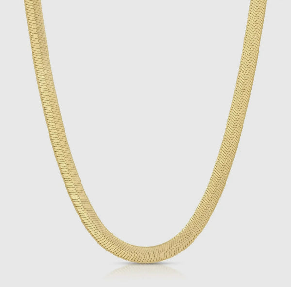 Elevate your everyday style with our Thick Classic Herringbone Necklace, a stunning 6mm wide gold chain that shines with effortless sophistication. This silky-smooth Herringbone chain lays beautifully against the skin, making it the perfect piece for your layering game or a bold solo statement.