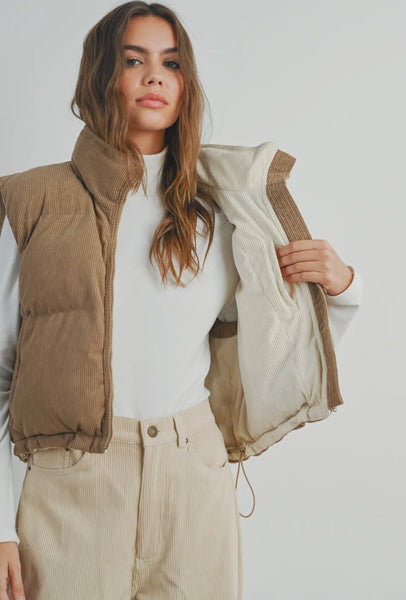 The Cecilia Corduroy Puffer Vest – Reversible, Stylish & Cozy